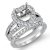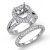 Define elegance, with this 14K white gold bridal set that consists of a semi mount engagement ring and a matching band, featuring 2.75ct. round pave set diamonds in halo and split shank.