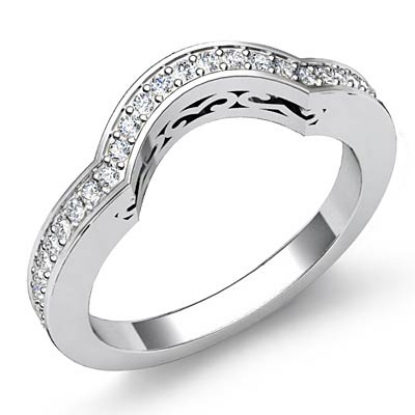 0.53Ct Pave Diamond Wedding Band Matching Set 14k White Gold
