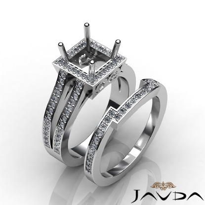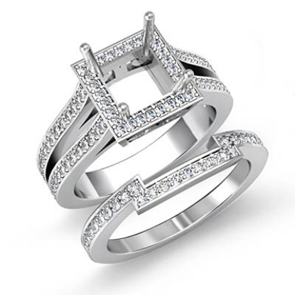 1.35Ct Women's Diamond Engagement Semi Mount & Wedding Band Ring Set 14K Wh Gold
