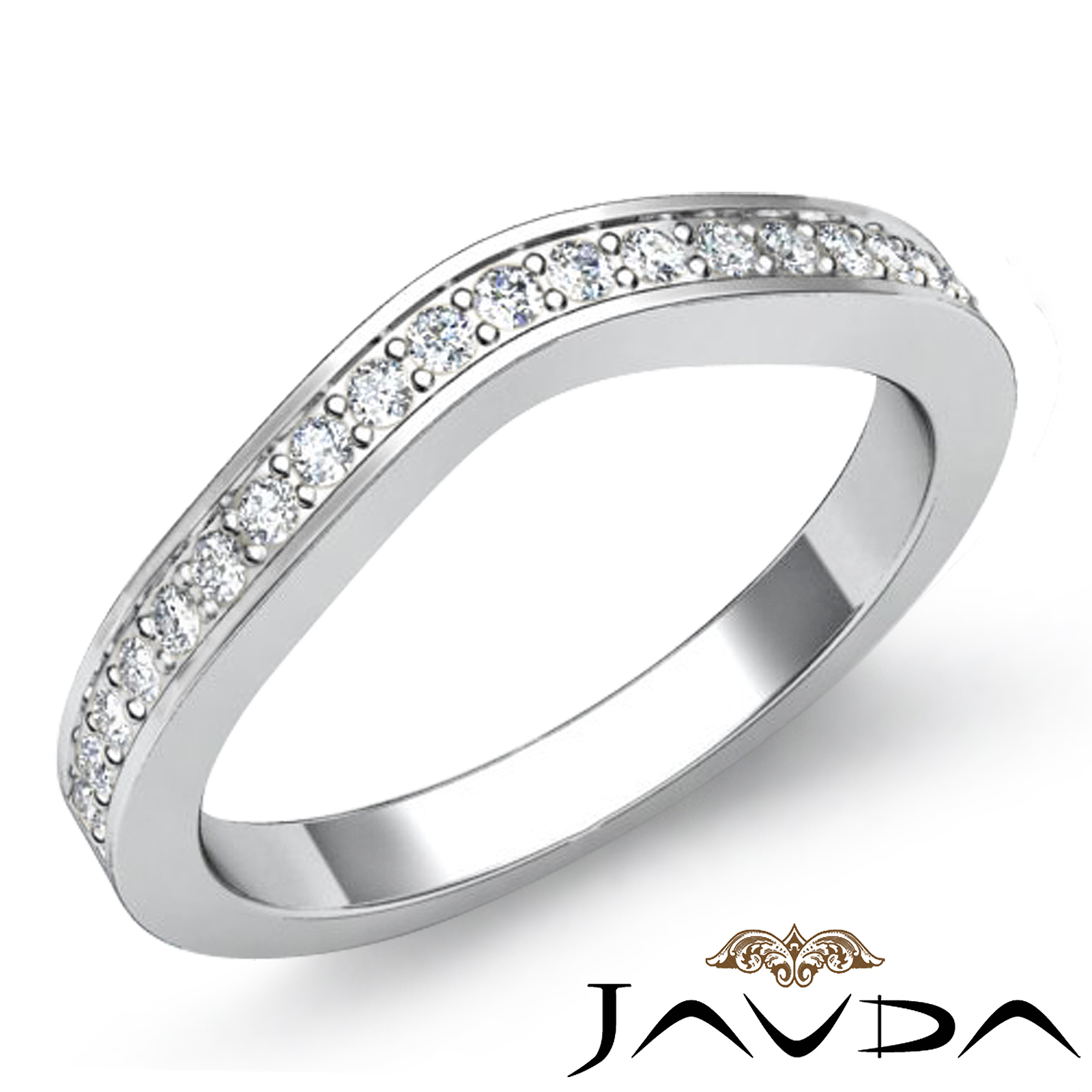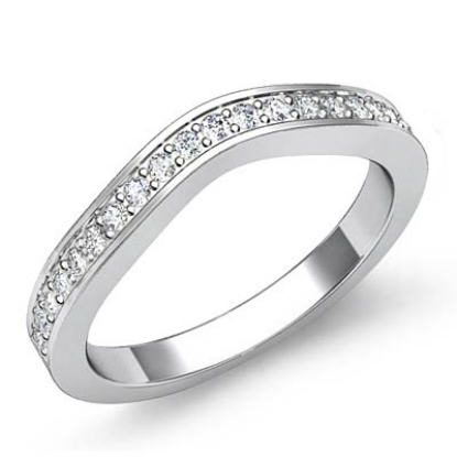 Women's Half Wedding Band 14k White Gold Classic Curve Pave Diamond Ring 0.51Ct