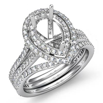 2.2Ct Diamond Engagement Ring Semi Mount Bridal Set 14K White Gold Wedding Band
