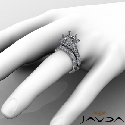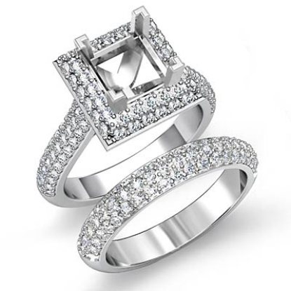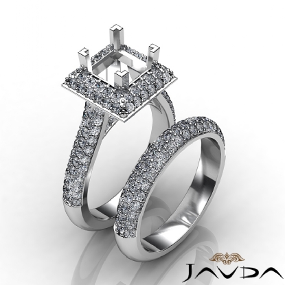 Stunning and intricate, this 2.9ct. bridal set consists of a semi mount engagement ring and a matching band with round pave set diamonds. Made in 14K white gold, this set will be loved by her!