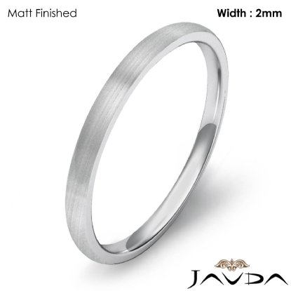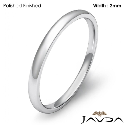 1.6g Men's 14k White Gold Solid Wedding Band. Dome style comfort-fit band. Ring Size is 4. Width is 2mm. Available in high polish and matt finish.