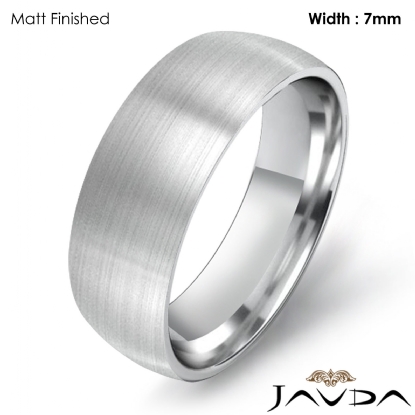 6.5g Men's 14k White Gold Solid Wedding Band. Dome style comfort-fit band. Ring Size is 4. Width is 7mm. Available in high polish and matt finish.