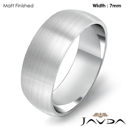 5.5g Men's 14k White Gold Solid Wedding Band. Dome style band. Ring Size is 4. Width is 7mm. Available in high polish and matt finish.
