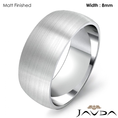 6.3g Men's 14k White Gold Solid Wedding Band. Dome style band. Ring Size is 4. Width is 8mm. Available in high polish and matt finish.
