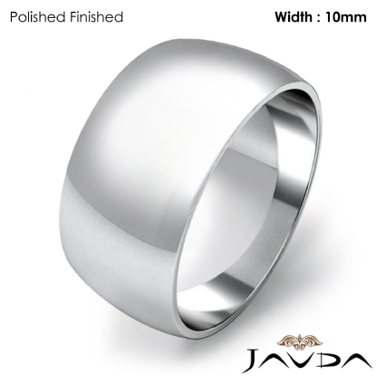 Men Plain Dome Polish Wedding Band Solid Ring 10mm 14k White Gold 7.7g 4sz