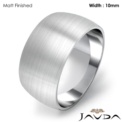 7.7g Men's 14k White Gold Solid Wedding Band. Dome style band. Ring Size is 4. Width is 10mm. Available in high polish and matt finish.