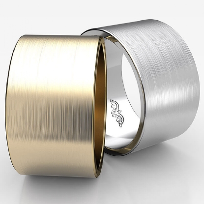9.5g Men's 14k White Gold Solid Wedding Band. Flat style band. Ring Size is 4. Width is 12mm. Available in high polish and matt finish.