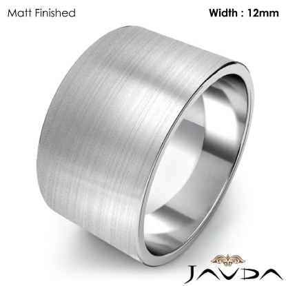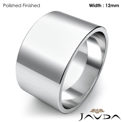 Mens Plain Wedding Band Flat Pipe Cut Ring 12mm 14k White Gold 9.5g 4sz