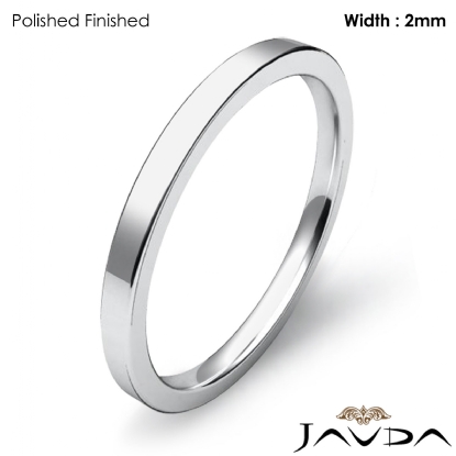 2.1g Men's 14k White Gold Solid Wedding Band. Flat style comfort-fit band. Ring Size is 4. Width is 2mm. Available in high polish and matt finish.