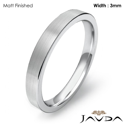 3.1g Men's 14k White Gold Solid Wedding Band. Flat style comfort-fit band. Ring Size is 4. Width is 3mm. Available in high polish and matt finish.
