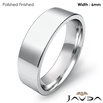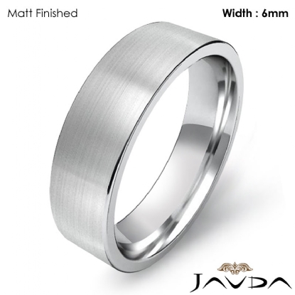6.1g Men's 14k White Gold Solid Wedding Band. Flat style comfort-fit band. Ring Size is 4. Width is 6mm. Available in high polish and matt finish.