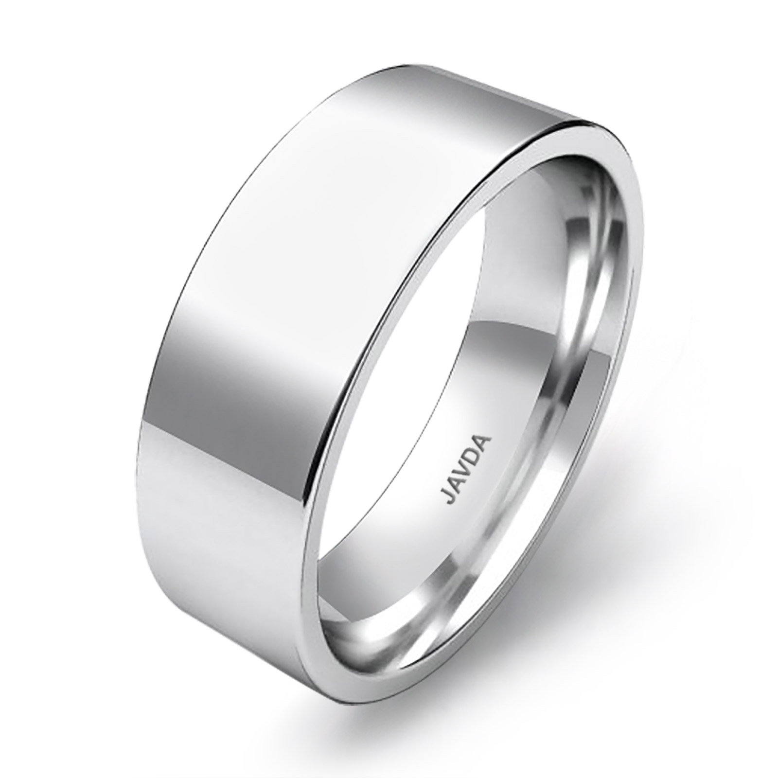 Men Wedding Band Comfort Fit Flat Pipe Cut Ring 7mm 14k White Gold 7g 4sz