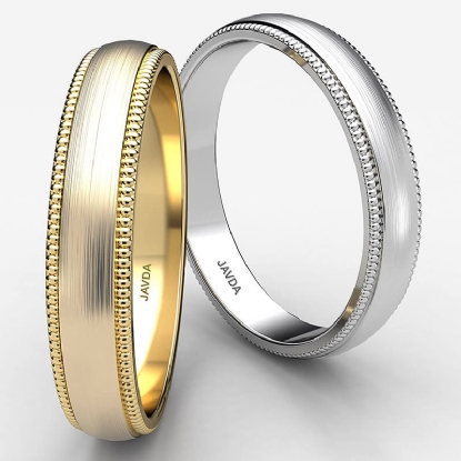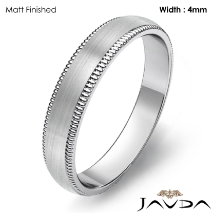 3.7g Men's 14k White Gold Solid Wedding Band. Dome milgrain edge style band. Ring Size is 4. Width is 4mm. Available in high polish and matt finish.