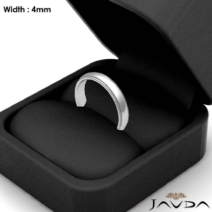 Plain Men Wedding Band Dome Milgrain Edge Ring 4mm 14k White Gold 3.7g 4sz