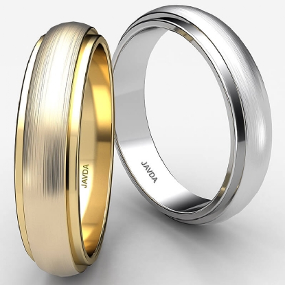 5.3g Men's 14k White Gold Solid Wedding Band. Dome Step Down style band. Ring Size is 4. Width is 5mm. Available in high polish and matt finish.
