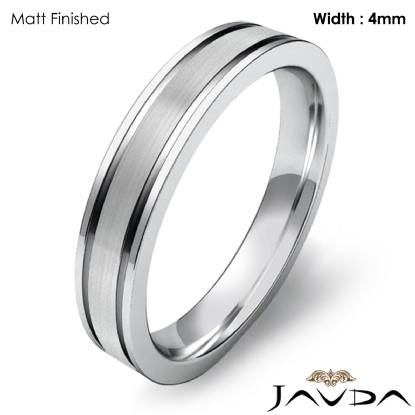 4.5g Men's 14k White Gold Solid Wedding Band. Flat Newport style band. Ring Size is 4. Width is 4mm. Available in high polish and matt finish.