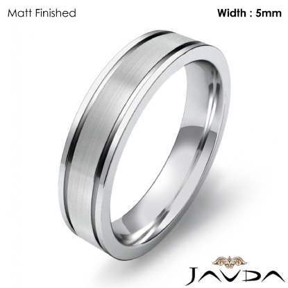 5.6g Men's 14k White Gold Solid Wedding Band. Flat Newport style band. Ring Size is 4. Width is 5mm. Available in high polish and matt finish.