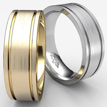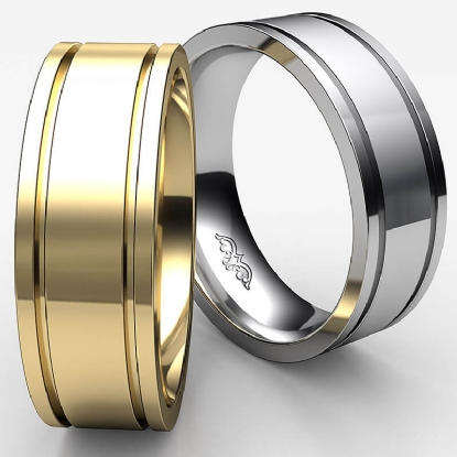 7.8g Men's 14k White Gold Solid Wedding Band. Flat Newport style band. Ring Size is 4. Width is 7mm. Available in high polish and matt finish.