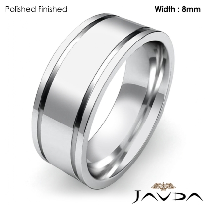 8mm Mens Wedding Solid Band Flat Fit Plain Ring 14k White Gold 8.7g 4sz