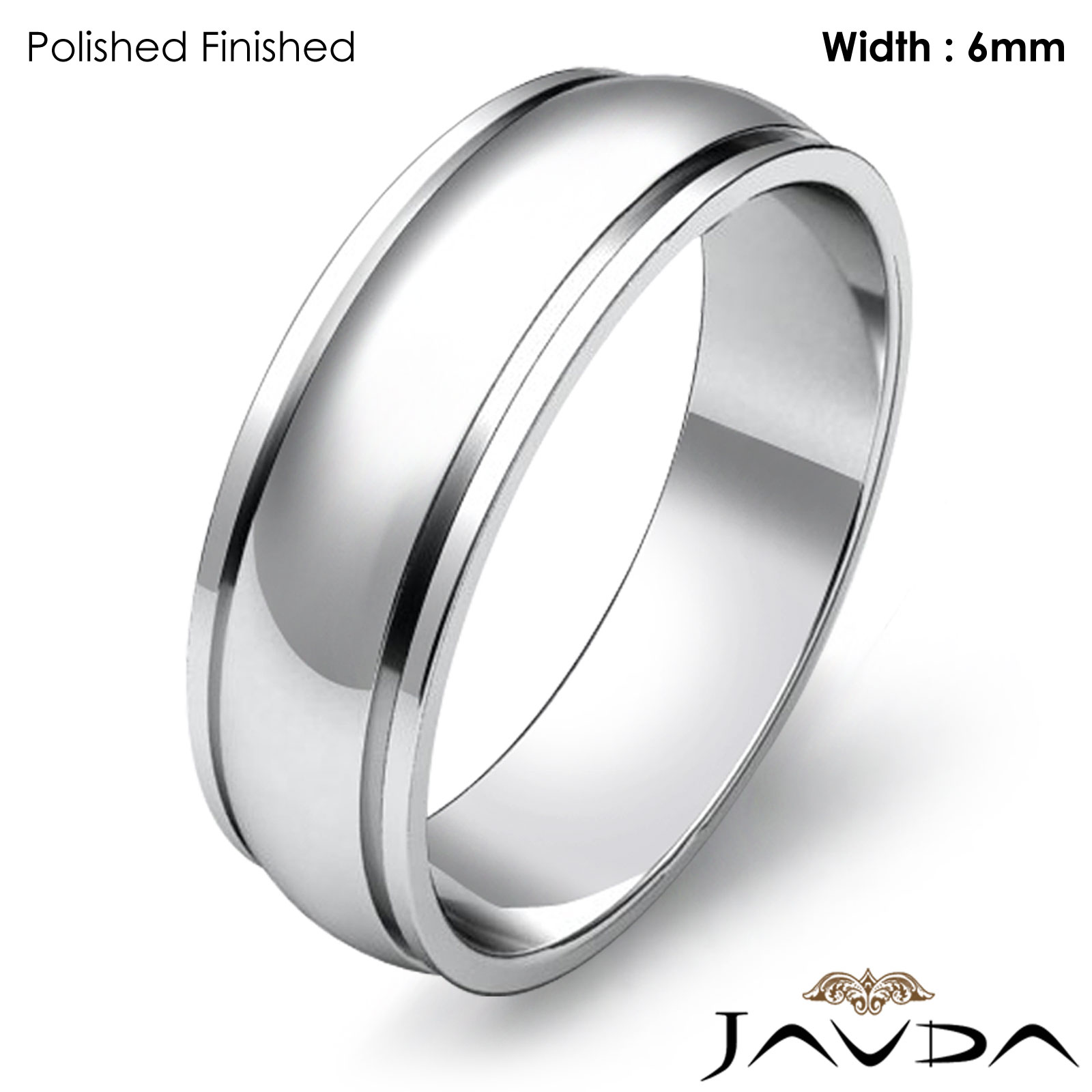 6mm Mens Wedding Solid Band Dome Step Plain Ring 14k White Gold 4.3g 4sz