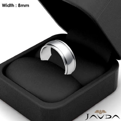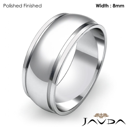 Mens Plain Wedding Solid Band Dome Step Ring 8mm 14k White Gold 5.8g 4sz