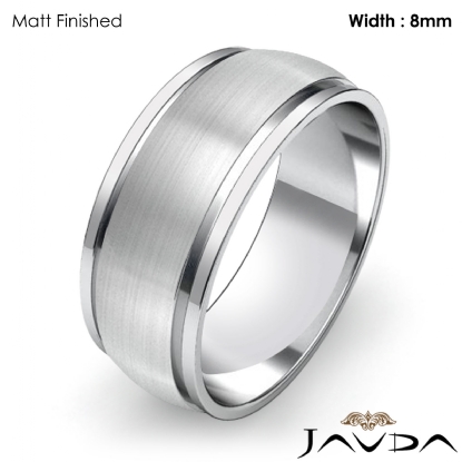5.8g Men's 14k White Gold Solid Wedding Band. Dome Step Down style band. Ring Size is 4. Width is 8mm. Available in high polish and matt finish.