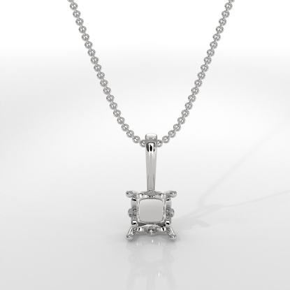 Prong Set Cushion Cut Diamond Solitaire Semi Mount Bail Pendant 14k White Gold
