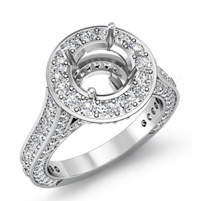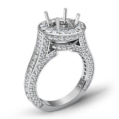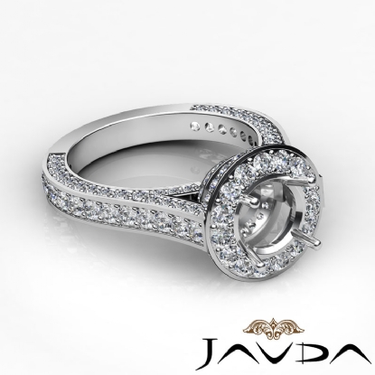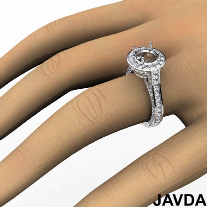 2.1Ct Diamond Engagement Round Semi Mount Halo Pave Setting Ring 14k White Gold