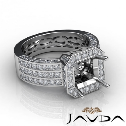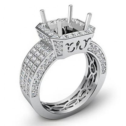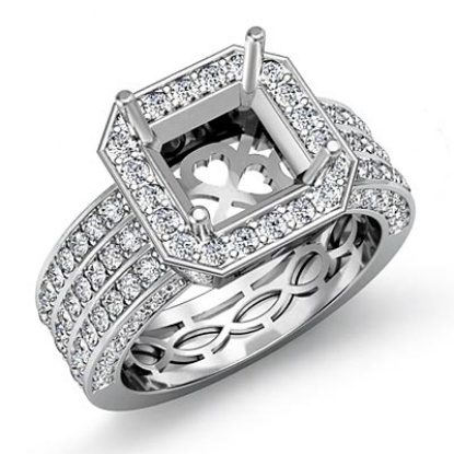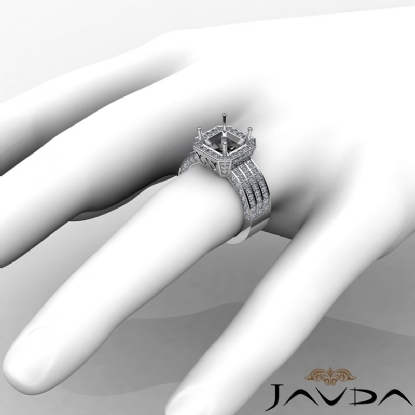 1.4Ct 3 Row Diamond Engagement Princess Semi Mount Ring 14k W Gold Halo Setting