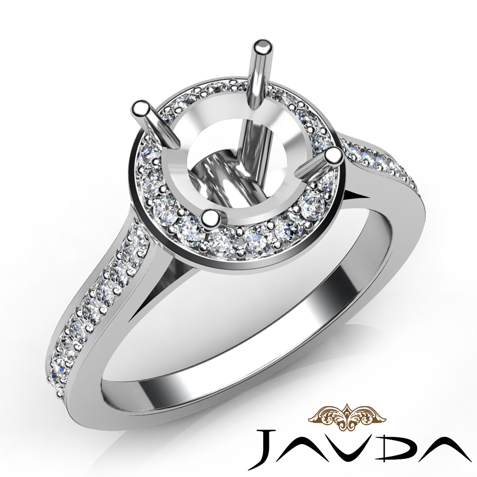 Unlock her heart, with this 14K white gold diamond engagement ring. This ring showcases a round semi mount halo and a dazzling shank, with pave set round diamonds totaling 0.70 carat.