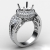 3 Stone Round Diamond Vintage style Engagement Halo Ring Set 14K White Gold Semi-Mount 1.85Ct
