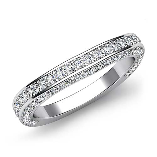 0.95 Ct Pave Diamond Half Wedding Band 14k White Gold Matching Ring