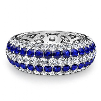 5 Row Eternity Womens Ring Sapphire Diamond Anniversary Band 14k White Gold 4Ct