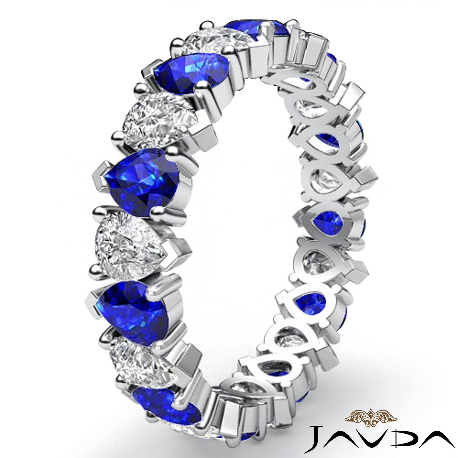 3.0 Carat Pear Cut Sapphire Diamond Eternity Wedding Band made in 14k White Gold.