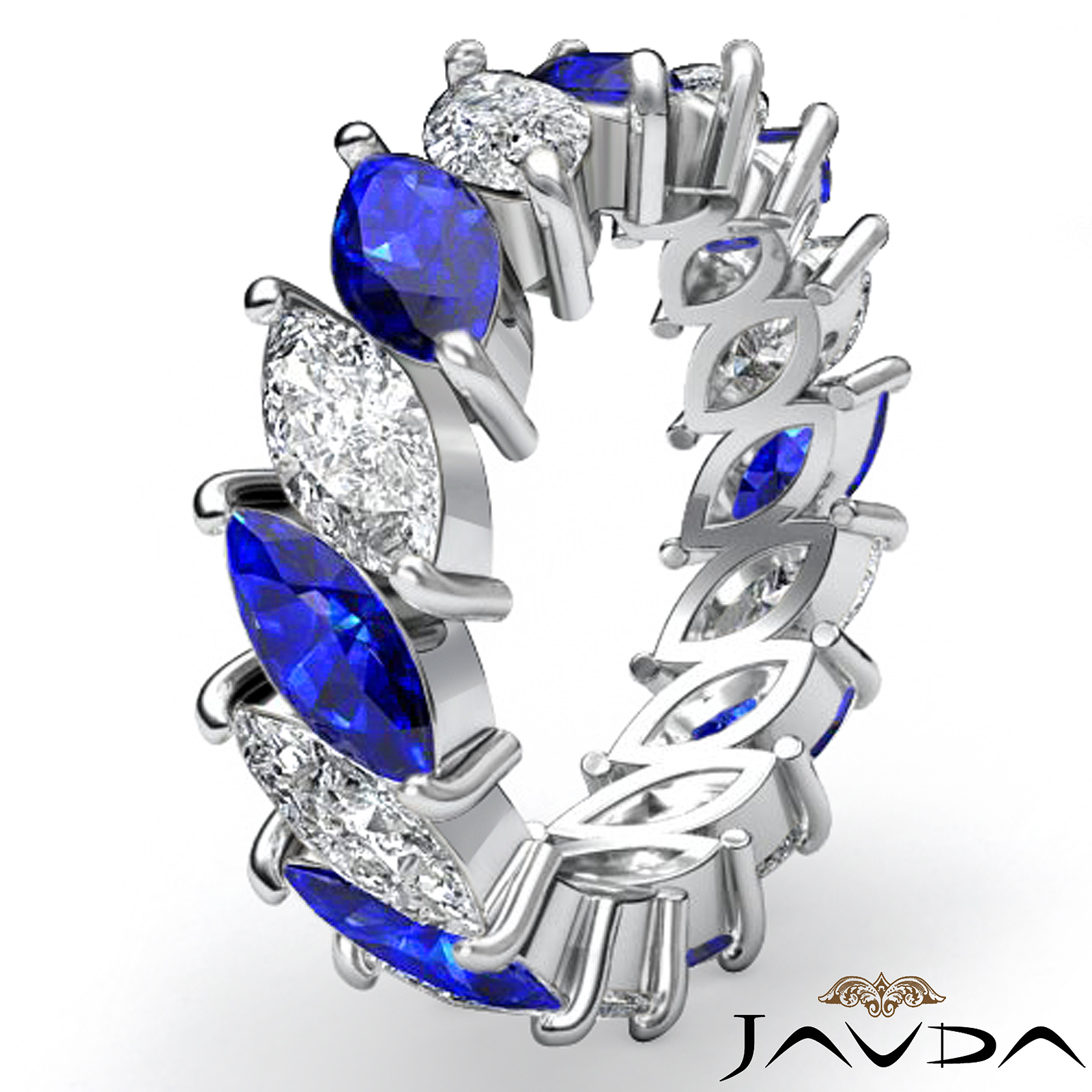 Marquise Cut Sapphire Diamond Eternity Women's Band Ring 14k White Gold 5.3Ct