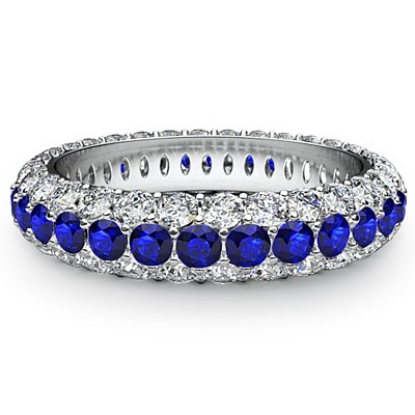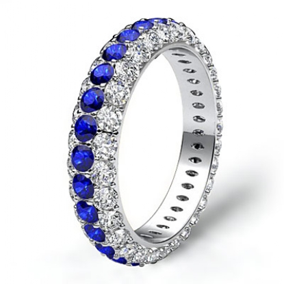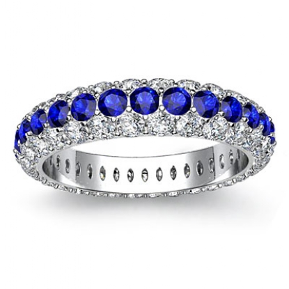 2.7 Carat Round Pave Sapphire Diamond Women Eternity Ring Band made in 14 karat White Gold.