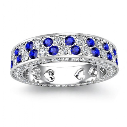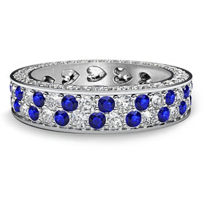 Women Eternity Engagement Band 14k W Gold 2Row Pave Sapphire Diamond Ring 2.2Ct
