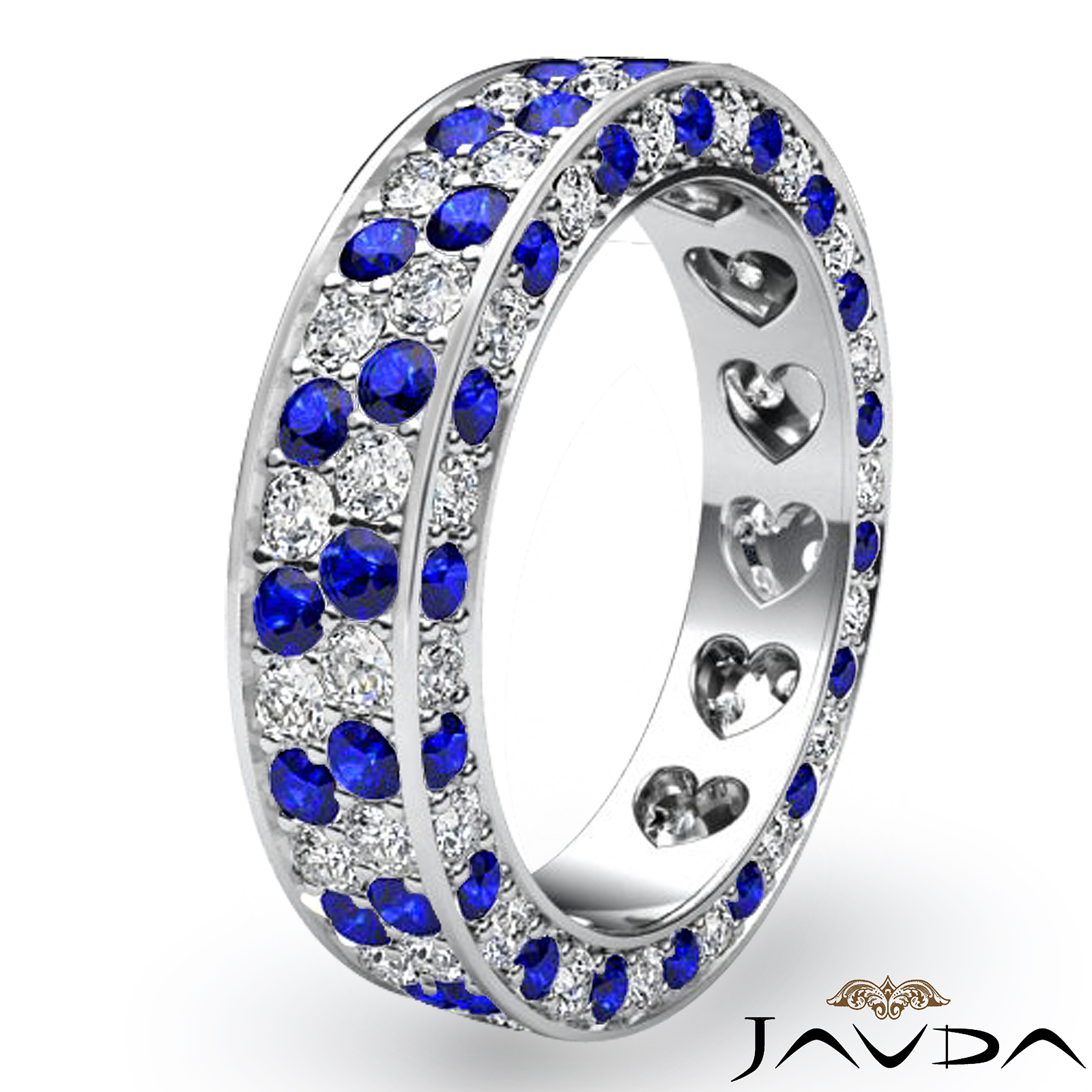 2 Row Pave Sapphire Diamond Eternity Wedding Women's Band 14k W Gold Ring 2.2Ct