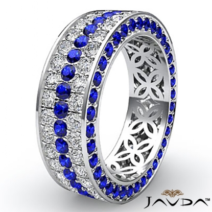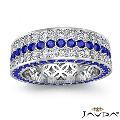 Three Row 2.7Ct Sapphire Diamond Filigree Women Eternity Wedding Band 14k Gold