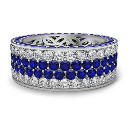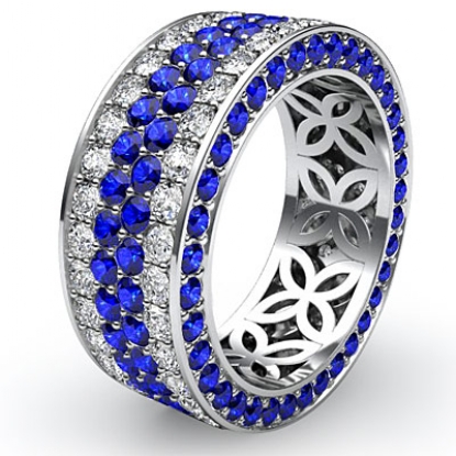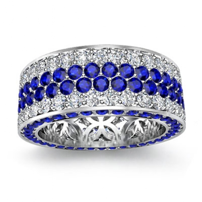 Women's Wedding Band 14k White Gold Pave Eternity Ring Sapphire Diamond 3.2Ct
