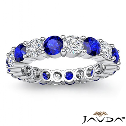Sapphire Prong Diamond Eternity Wedding Band 14k White Gold Women's Ring 2.4Ct