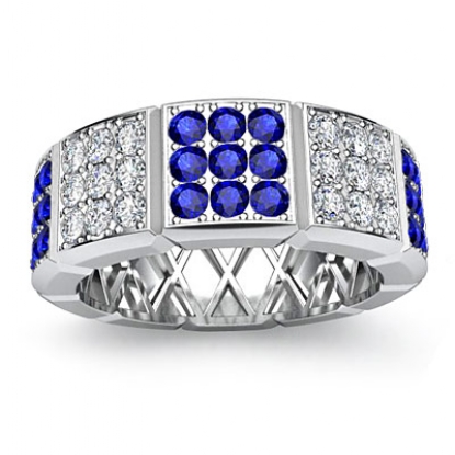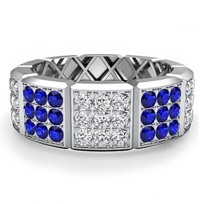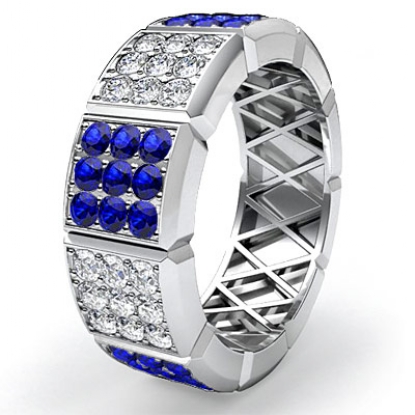 2.2 Carat Round Sapphire Diamond Men Eternity Wedding Band & Ring made in 14 Karat White Gold.