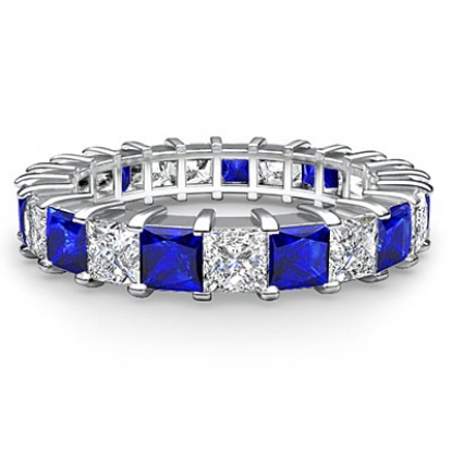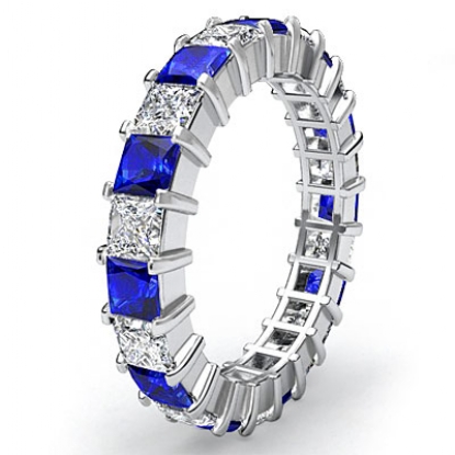 Princess Sapphire Diamond Eternity Wedding Band Women's Ring 14k White Gold 4Ct