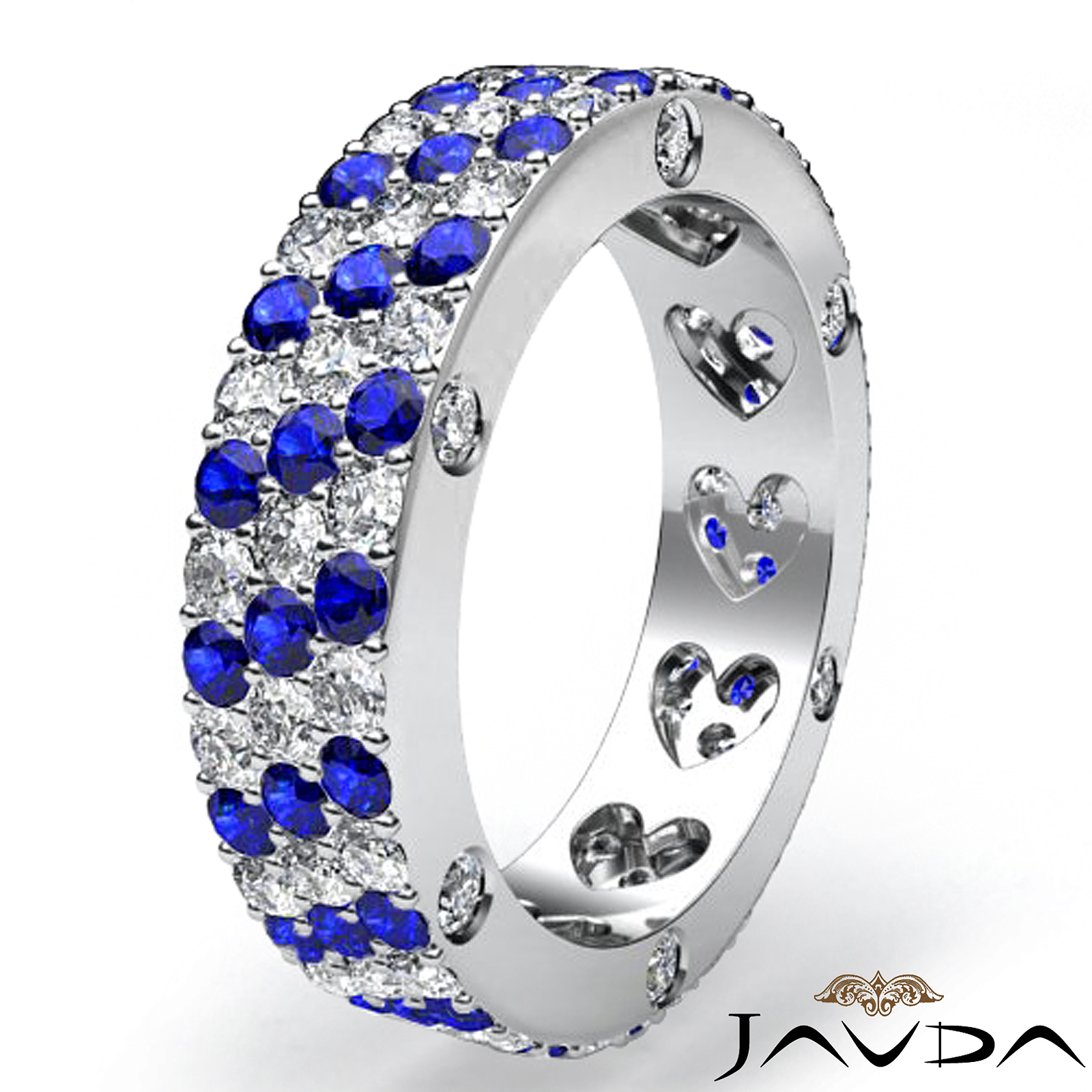 3 Row Sapphire Diamond Women's Eternity Pave Wedding Band Ring 14k W Gold 3.6Ct