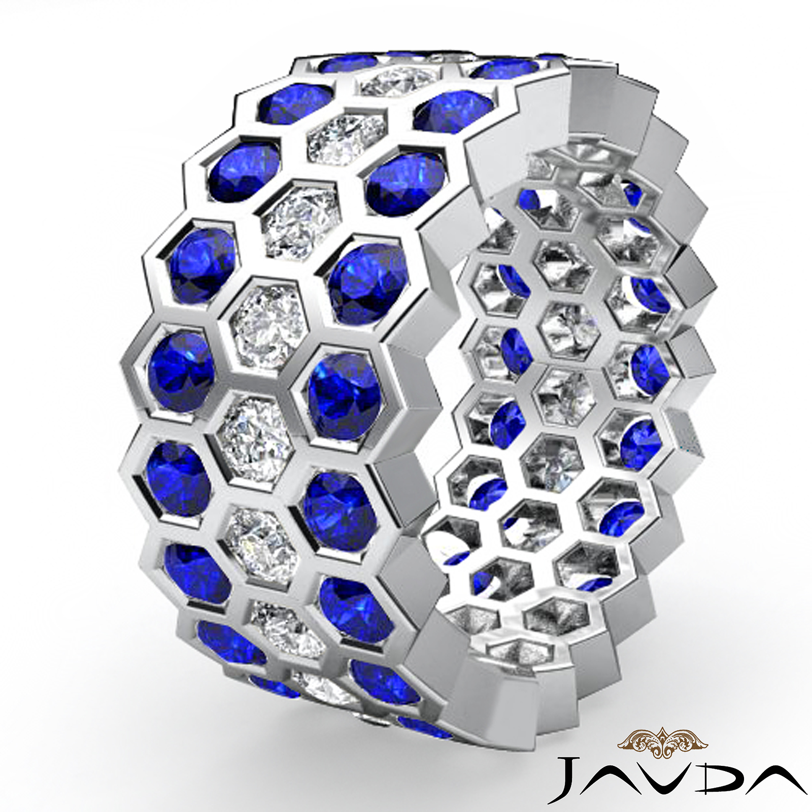 Round Sapphire Bezel Diamond Eternity Ring Wedding Band 14k White Gold 3.7Ct