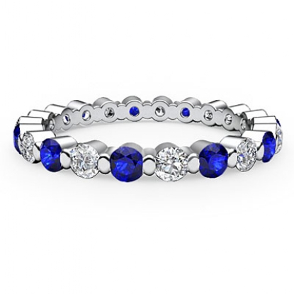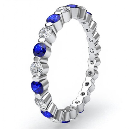 1.4 Carat Round Sapphire Diamond Women Eternity Wedding Band in 14k White Gold.