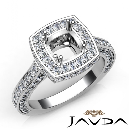 1.6Ct Diamond Engagement Ring Halo Setting 14k White Gold Cushion Semi Mount