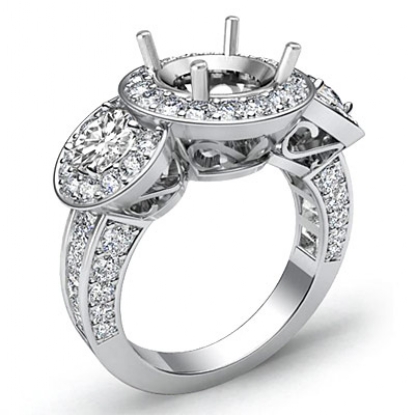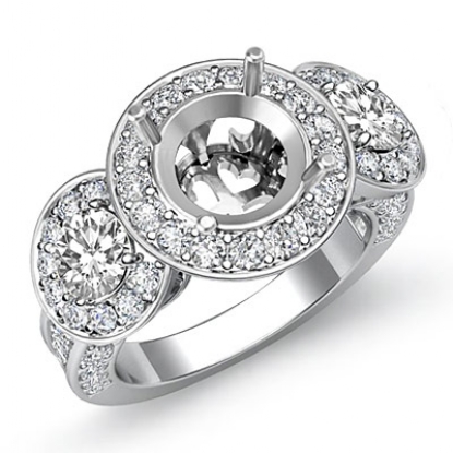 Three Stone Diamond Engagement Setting 14k White Gold Round SemiMount Ring 1.3Ct